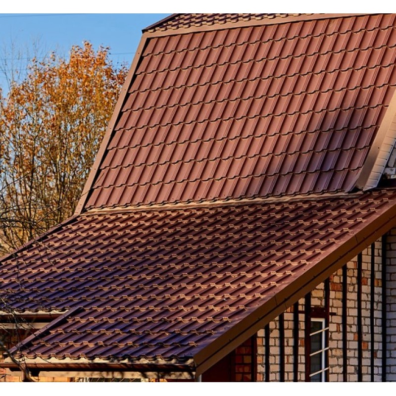 Рельефный абсолютно симметричный профиль металлочерепицы ГЕРМАНО с уникальным тройным тиснением создает неповторимую эстетику и надежность. Симметричность металлочерепицы экономит материал благодаря возможности сдвигать модули и использовать остатки при монтаже.