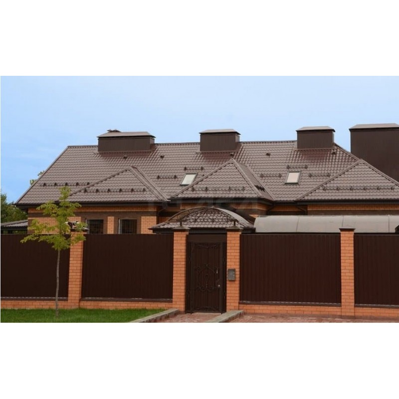 Металлочерепица Супермонтеррей — Классический вариант кровельного покрытия, зарекомендовавший себя как качественный и надежный материал. Супермонтеррей встречается на 60% всех крыш из металлочерепицы в Беларуси. Главная ее техническая особенность — профиль, выполненный с большей высотой (20 мм по сравнению с 14 мм у Монтеррей). Это позволило придать крышам объектов большую презентабельность и изысканность. Металлочерепица Супермонтеррей стала прекрасной визуальной имитацией настоящей керамической черепицы.