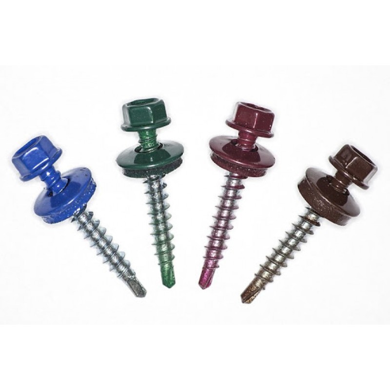 В наличии имеются саморезы следующих цветов: Коричневый RAL8017, Серый RAL7024, Зеленый RAL6005, Красный RAL3005, Синий RAL5005. О наличии других цветов уточняйте по телефону.